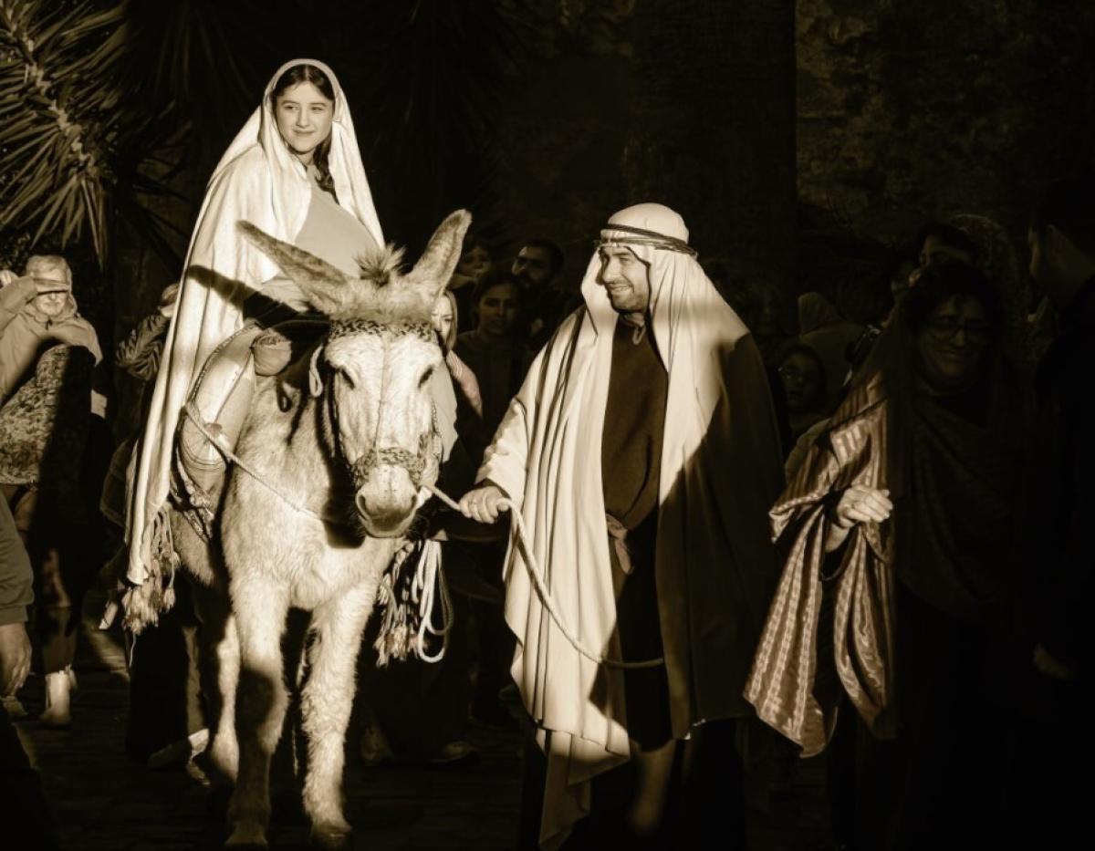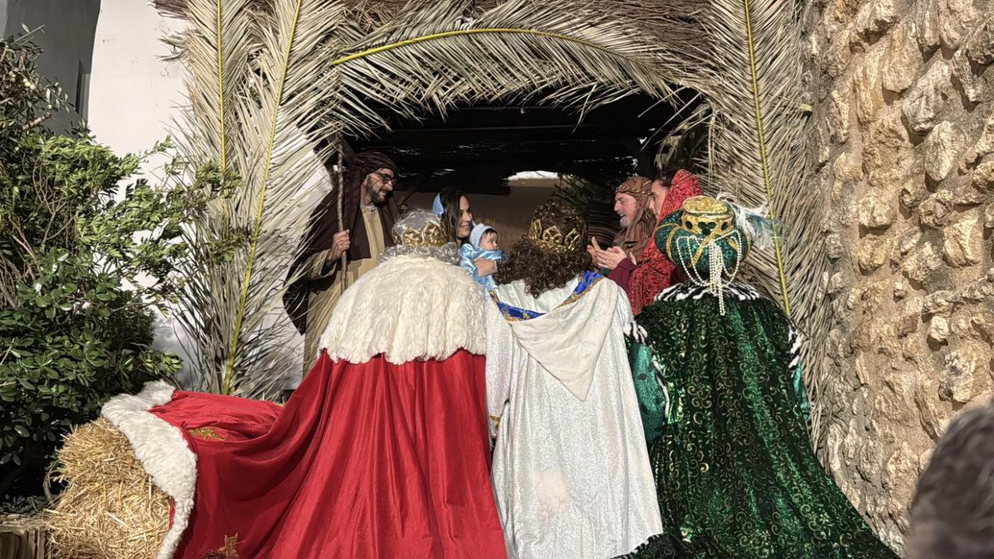 El recorrido te lleva por rincones y plazas llenas de encanto, donde decenas de vecinos, vestidos con trajes de época, recrean escenas de la vida en Belén. Desde la Anunciación hasta la Adoración de los Reyes Magos, cada detalle está cuidado al máximo para transportarte a aquella época. La iluminación tenue, la música suave y el aroma a incienso crean una atmósfera mágica y emotiva que te envuelve por completo.